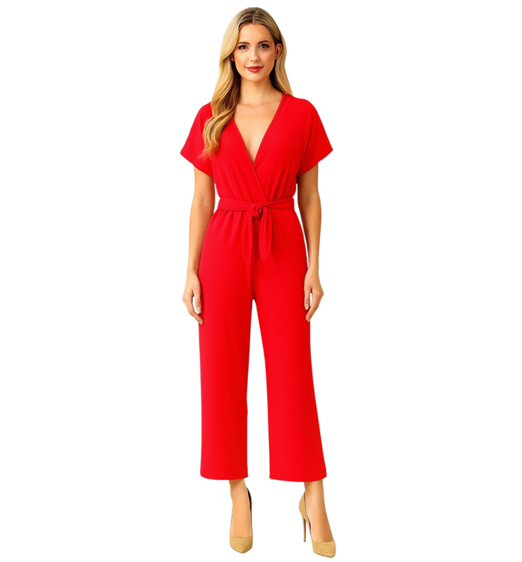 Csinos, ejtett vállú overál szép dekoltázzsal, kellemes lenge anyagával a nyár kedvenc viselete, akár különleges alkalomra is megfelel! Dereka gumis, övvel köthető, nem elasztikus. Nadrágja bő szárú, magasságtól függően kb. a boka felettig ér. Teljes hossza 130 cm, mellbősége 80-100 cm, derékbősége 60-80 cm, az ujj hossza a válltól 13 cm.