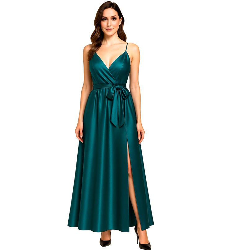 Spagettipántos selyemszatén maxi ruha