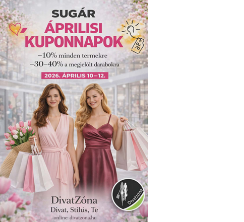 Süt a nap, zöldbe borultak a fák, előkerülhetnek a könnyebb ruhadarabok! Ha felfrissítenéd a ruhatáradat, nálunk 10% engedménnyel vásárolhatsz! Ne hagyd ki ezt a lehetőséget, keresd a DivatZónát a Sugárban!