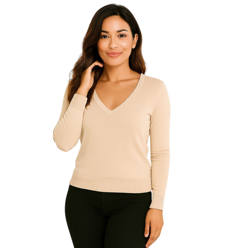 V-nyakú kötött felső készletenszín: bézs