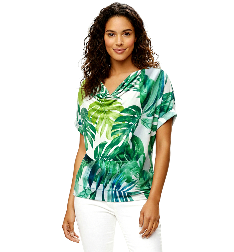 Mintás, rövid ujjú jégselyem felsőkészletenszín: fehérminta: zöld pálma