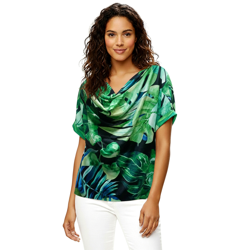 Mintás, rövid ujjú jégselyem felsőkészletenszín: feketeminta: zöld pálma