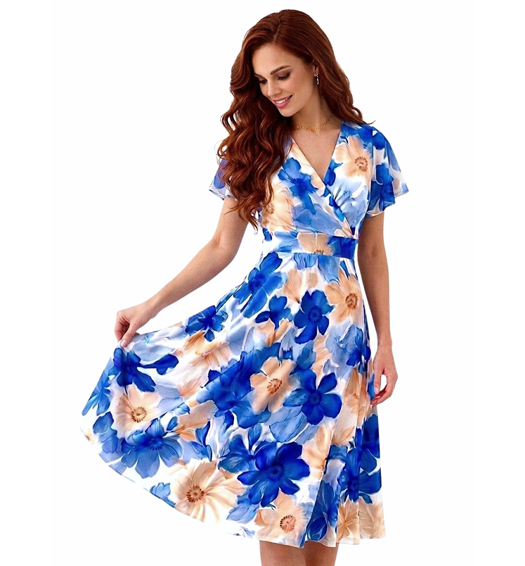Mintás, rövid ujjú átlapolt, hátul gumis ruhakészletenszín: fehérminta: királykék virágok