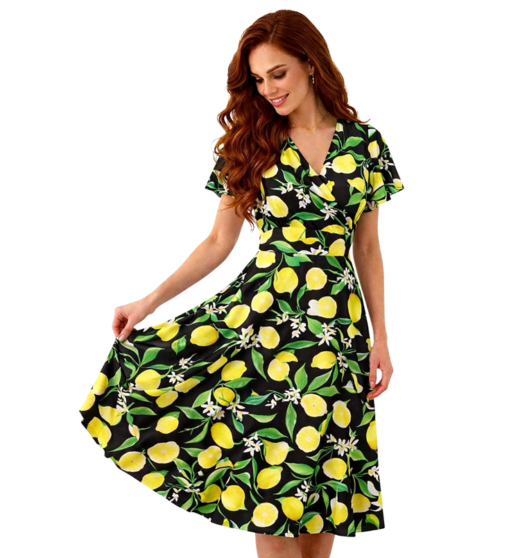 Mintás, rövid ujjú átlapolt, hátul gumis ruhakészletenszín: feketeminta: citromok